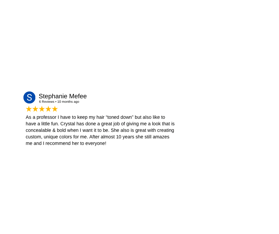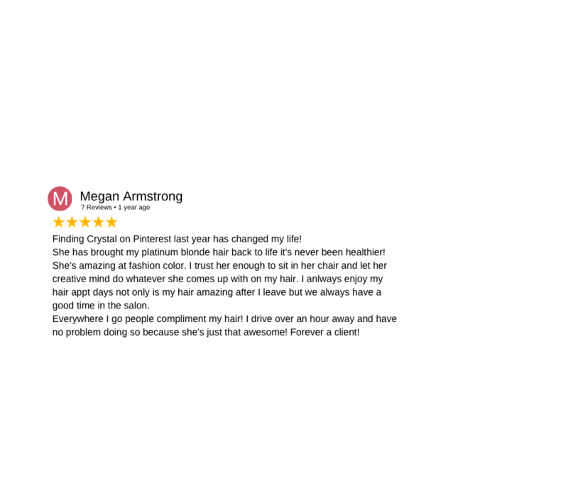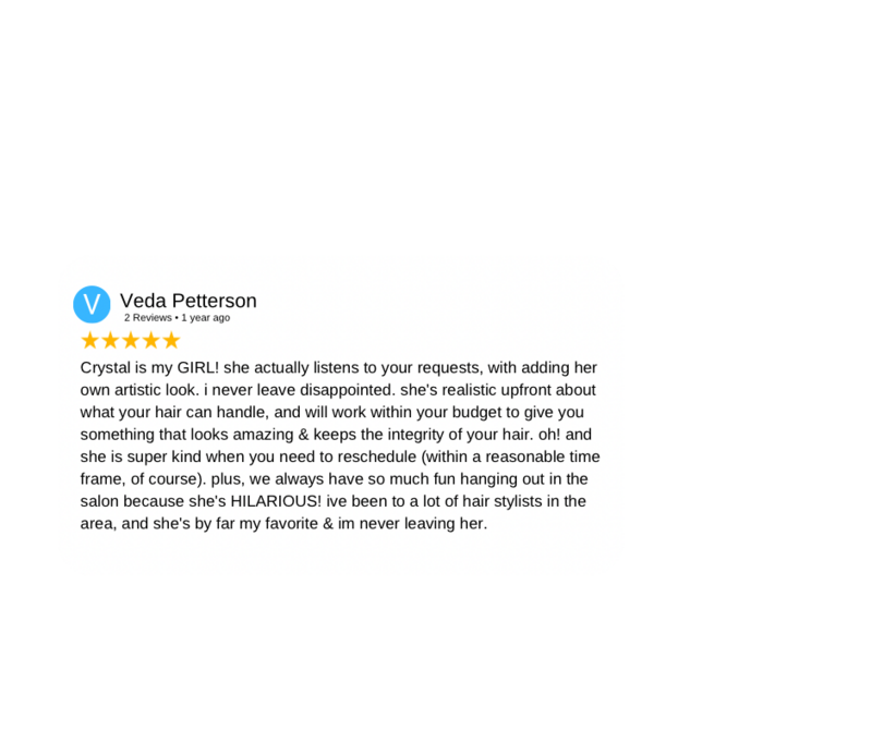 Clients are welcome and encouraged to create content while in the salon as long as doing so does not imped on the services being performed & does not paint Crystal (Cryistal Chaos) or other stylists/clients in a negative light.