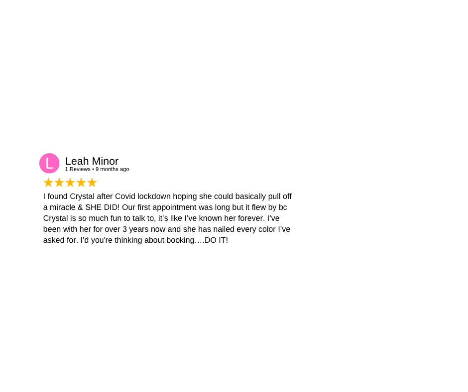 When it comes to inspiration photos it's important to know that not everyones hair is the same. Everyone has a different canvas, texture etc. While inspiration photos are great, it's important to know that you will never look exactly like the picture. I do my best in our consultations to mange your expectations & let you know what is and is not possible. But you have to do your part in listening and understanding that your hair can only withstand so much.
